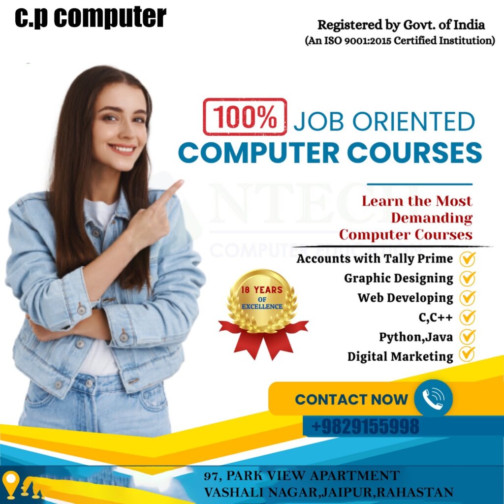 C.P. Computer, a premier destination for quality computer education and skill development. With a commitment to excellence and innovation, we offer a wide range of industry-relevant courses in programming, graphic design, web development, digital marketing, and more. Our experienced faculty, hands-on training approach, and state-of-the-art infrastructure ensure that students gain both theoretical knowledge and practical expertise. Whether you’re a beginner or looking to advance your career, C.P. Computer empowers you with the skills needed to succeed in today’s digital world.